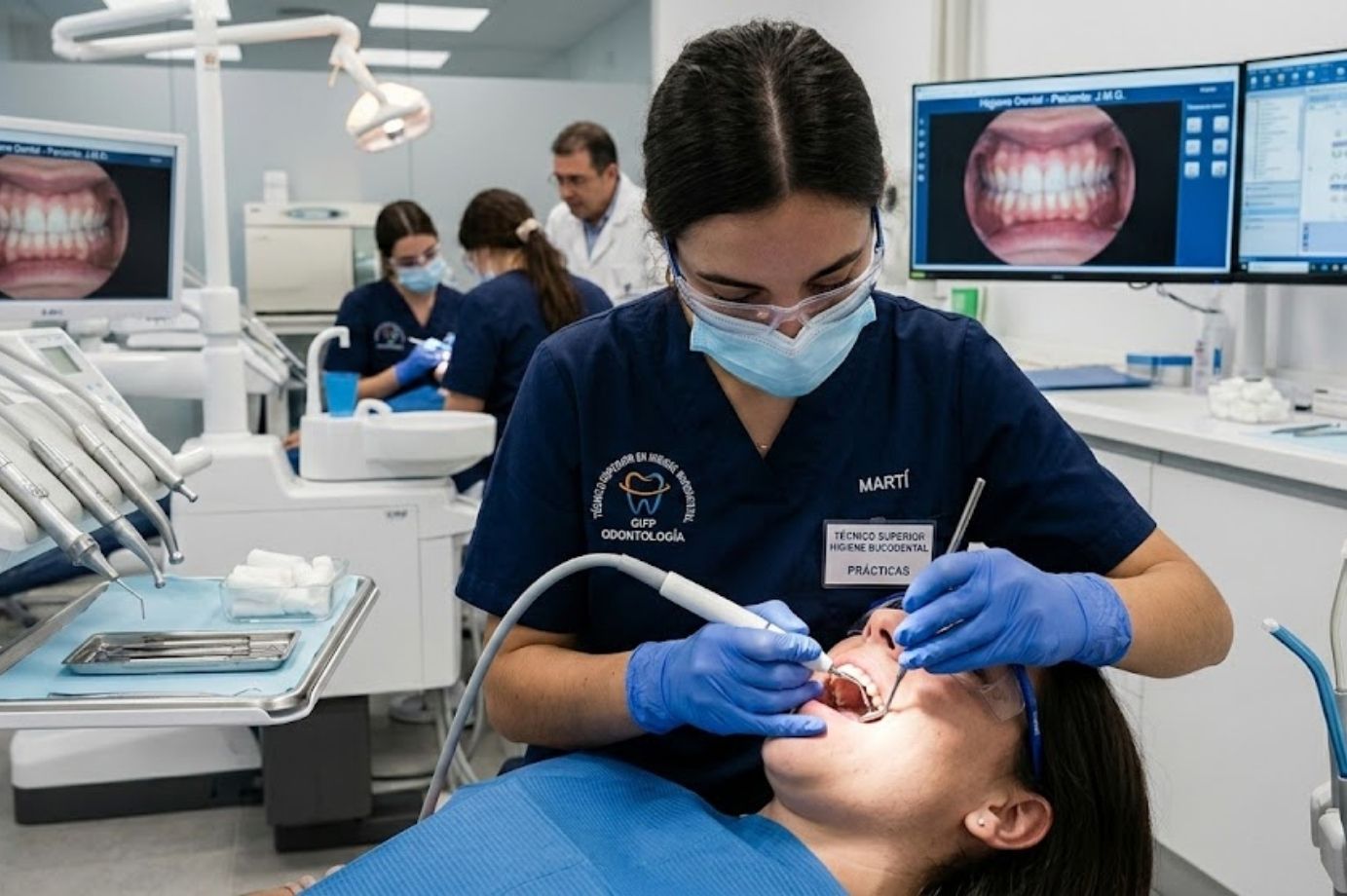 Incluye módulos teóricos y prácticos, además de una fase de Formación en Centros de Trabajo (FCT) en empresas del sector dental. El alumnado aprende técnicas de exploración, higiene dental y gestión clínica, preparándose para incorporarse directamente al mundo laboral o continuar su formación.