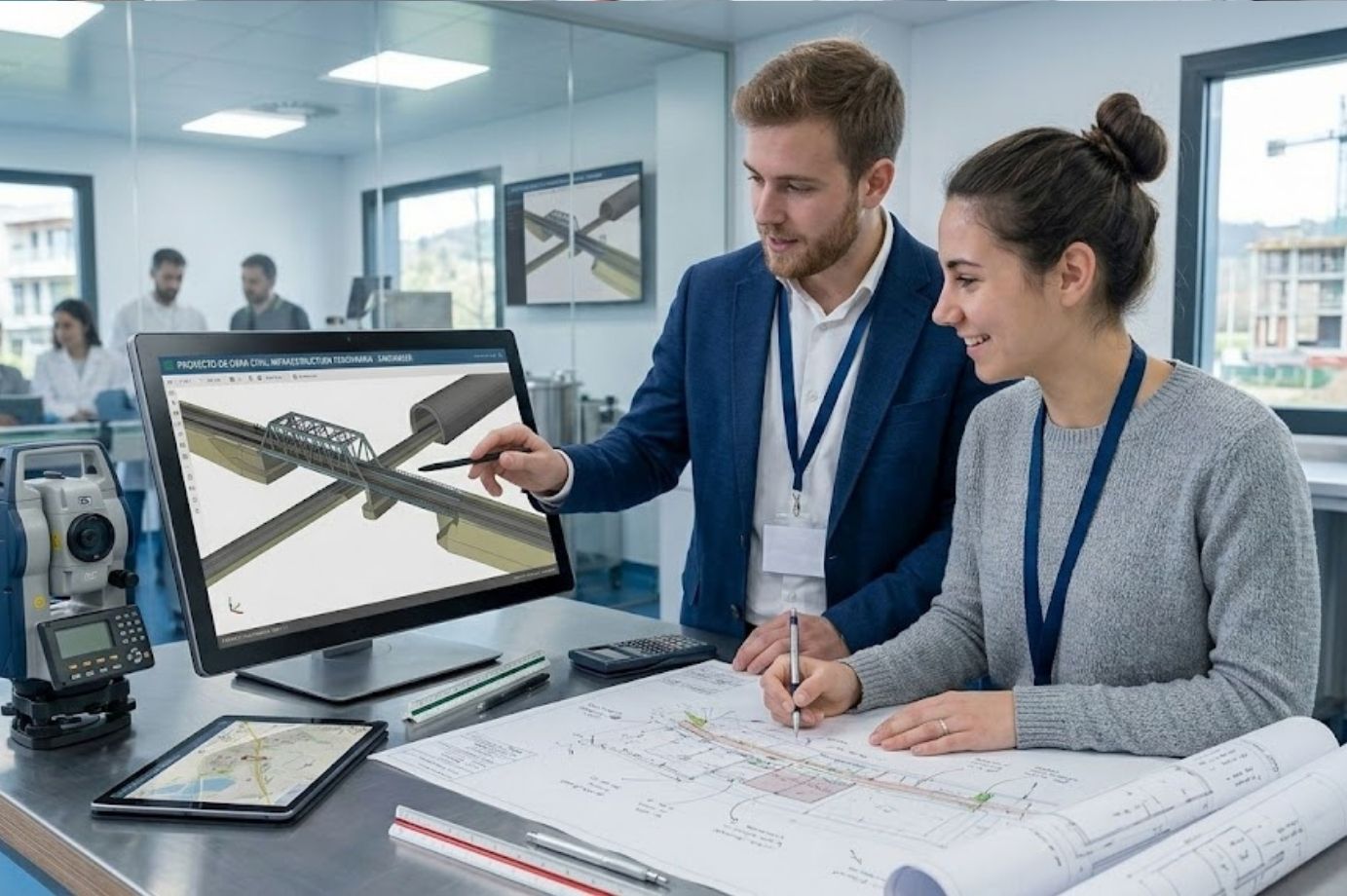 El programa enseña a realizar levantamientos topográficos, elaborar planos, gestionar documentación de proyectos y utilizar software de diseño asistido. También abarca aspectos clave como mediciones, presupuestos y estudios de impacto ambiental, aportando una visión integral del sector.